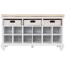 Calia shoe storage unit oak shoe bench with a black frame and black mesh dividers. Vasagle shoe bench storage bench with drawer and open compartments shoe shelf padded seat for entrance corridor bedroom 104 x 30 x 48 cm white lhs24wt 4 7 out of 5 stars 60 56 99 56. Amelia shoe storage bench provides storage plus a place to sit while removing shoes.