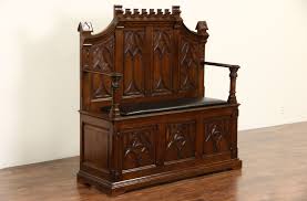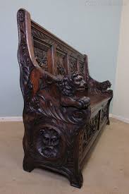 Benches pews 5 items a selection of vintage and antique oak and gothic revival settles blackwood and mahogany hall seats pews and benches for sale from australia s largest antiques web site. Italian renaissance revival antique carved hall seat bench. Victorian hall bench seat.