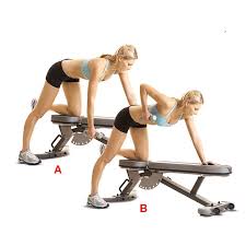 2 stand behind the bench with your feet about shoulder width apart and knees slightly bent and hold onto a dumbbell using a neutral grip with your outer hand. Try supersets of the bent over row with a dumbbell bench press or push ups for a killer but balanced lifting set. 3 press your other hand into the bench to support your upper body.