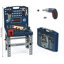 Amazon s choice for bosch workbench toy theo klein 8574 bosch workbench with 77 parts i with screwdriver and spanner pliers hammer and much more i work surface with learning function i dimensions. 4 3 out of 5 stars 26. Included are all kinds of tools screws and a couple of pieces of wood to get your little one started building things.