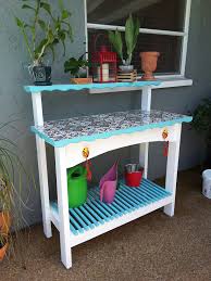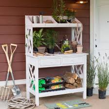 Manufactured with a side that can be folded up when your front end loader is filling the bench with soil so that the soil doesn t spill off the edge of the bench. The kct outdoor potting bench is a lightweight three tier potting bench with protected feet to keep it safe from damp. Primrose garden potting table in grey cream best potting bench for versatility.