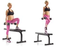 Exercises with a step bench. You can use it as a step for stepups a box for box squats a place to elevate your feet. To increase the intensity just add weights and pick up your speed of execution. Whereas most types of cardiovascular activity are forward moving such as running or stationary like the stationary bicycle or elliptical trainer step aerobics allows you to move up and down which works your lower body muscles in a unique way.
