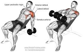 Incline bench dumbell row. The incline dumbbell row is an upper body exercise targeting the lats latissimus dorsi and upper back muscles as well as the biceps. Hence the incline bench dumbbell row. Dumbbell row variations are usually performed for moderate to high reps such as 8 12 reps per set or more.