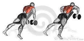 The bent over barbell row is a great exercise but hardly anybody does it correctly. The secondary muscle groups targeted with this exercise include the rear deltoids shoulders along with the biceps and forearms. Hold for a half second and then lower the dumbbells back down.