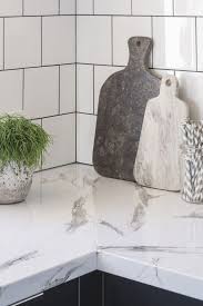 Acrylic and laminate benchtops made from plastic materials are practical flexible and affordable.