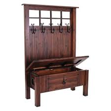 Sei hall tree entry bench in mission oak finish is made of veneer hardwoods with 4 hooks for storage of coats and scarves. Available from these sellers. Southern enterprises mission oak hall tree entry bench by southern enterprises.
