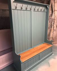 Handmade solid pine 4ft modern shaker style monks benches all sizes available. Tall monks bench with coat hooks shoe storage with seat for entryway or hallway monks bench with coat rack painted farrow and ball finish offthegrainco. Rustic hand made unique monks bench with lots of storage under seat measurements offers considered table height 63cm table top length 125cm table top width 71 cm height as bench 97cm seat height as bench 46cm.
