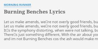 Burning benches lyrics. Burning benches lyrics performed by morning runner. Morning runner burning benches lyrics.