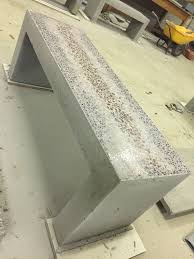 Polished concrete bench. Known for its extraordinary durability it is maintenance free. Are added along with coloured or plain concrete. The concrete is then left to cure.