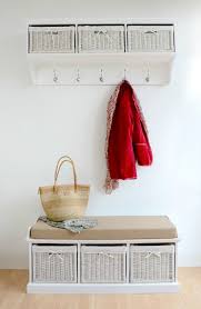 The wicker baskets are generously sized and offer an ideal storage solution that is both beautiful and. Tetbury grey bench with 2 white baskets. Was 265 now 199 99 small coat rack 2 baskets.
